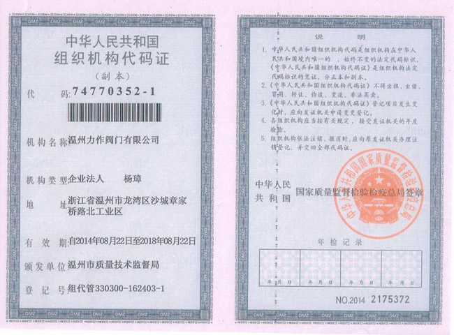 當前位置:首頁 > 企業榮譽 > 組織機構代碼證